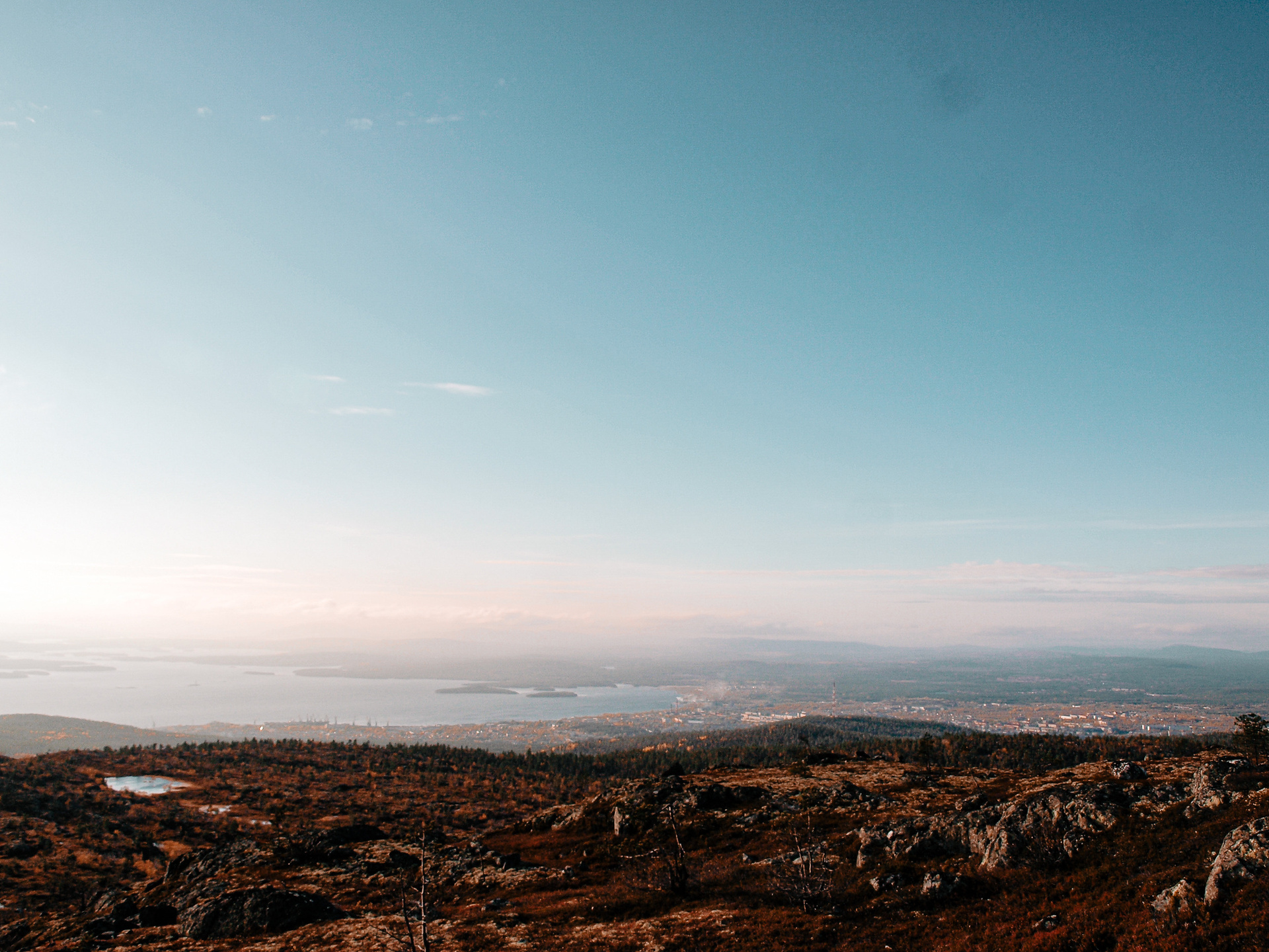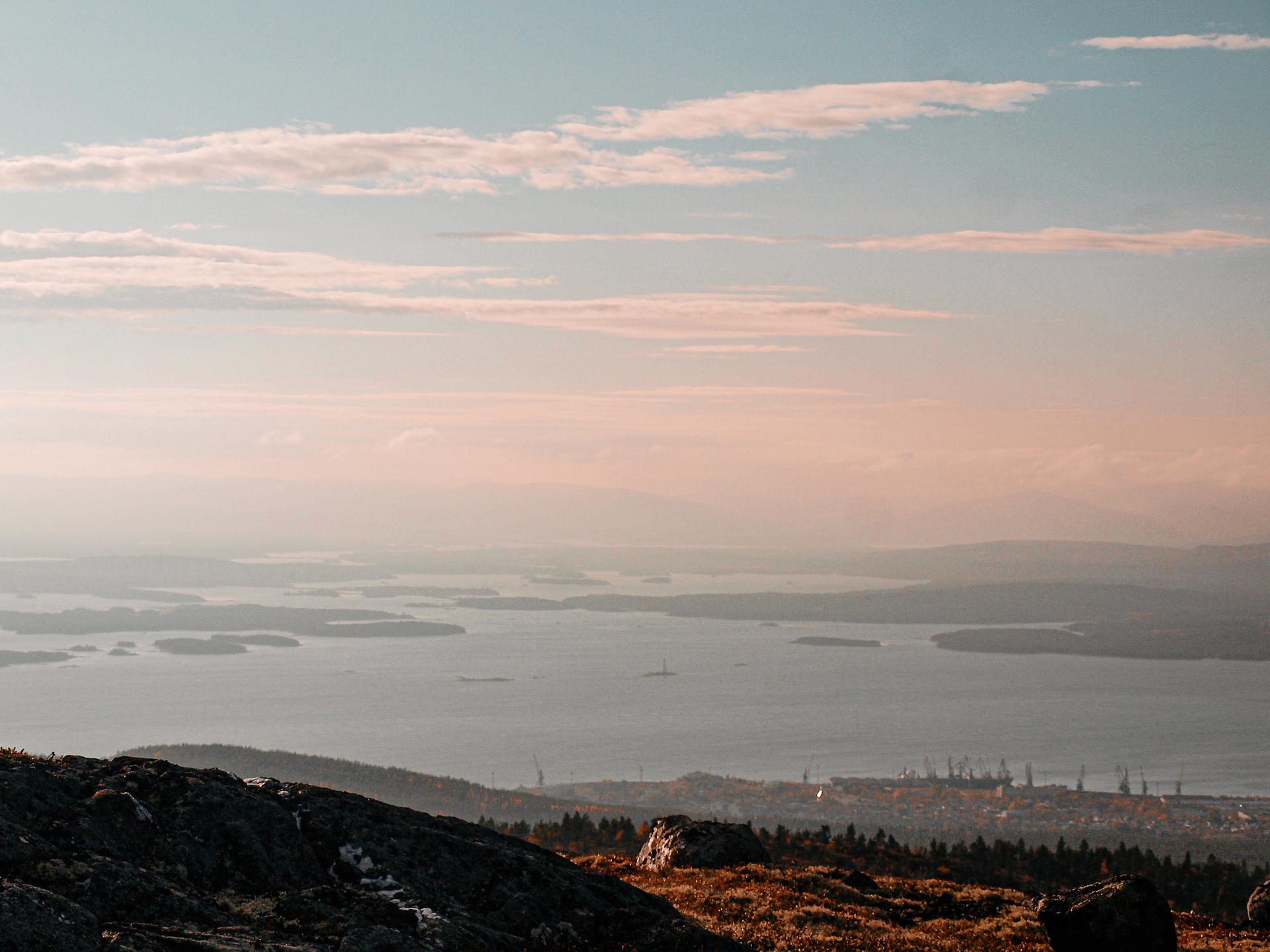 Поезд прибыл рано утром, я заселилась в хостел в центре города, и, так как в поезде я благополучно спала, то разобрала вещи, позавтракала и сразу же отправилась осматривать окрестности. Я решила вызвать такси до смотровой площадки, чтобы сразу увидеть и поснимать панорамы, открывающиеся на Кандалакшкий залив.